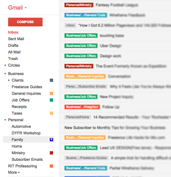 Si le modèle hiérarchique correspondait à un système de fichiers, le modèle en réseau correspond à un système d’étiquettes (tags) que certains programmes utilisent, par exemple Gmail :