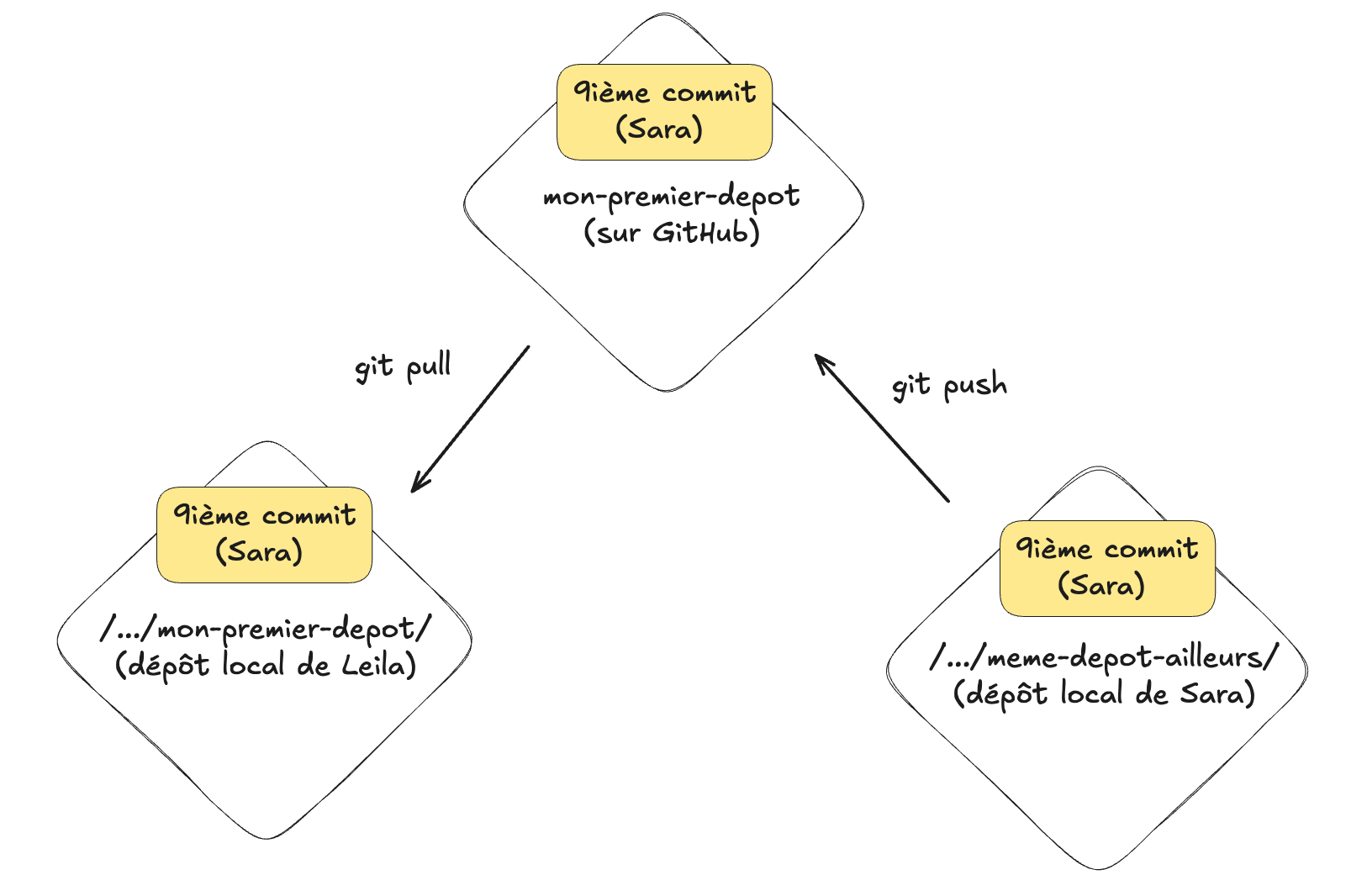 55f1243..878933d main -> mainOn remarque que Sara (qui vient de faire la commande git push dans son dépôt)