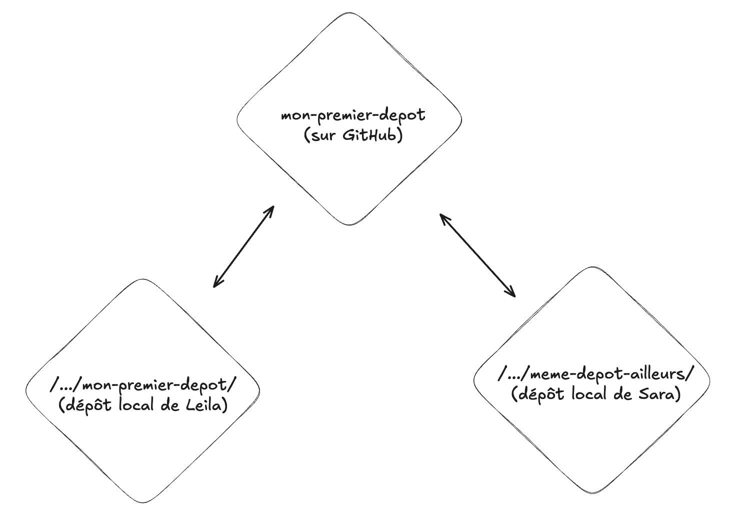 se trouve dans deux dépôts : le sien, et celui de GitHub. Pour que Leila puisse l’obtenir,