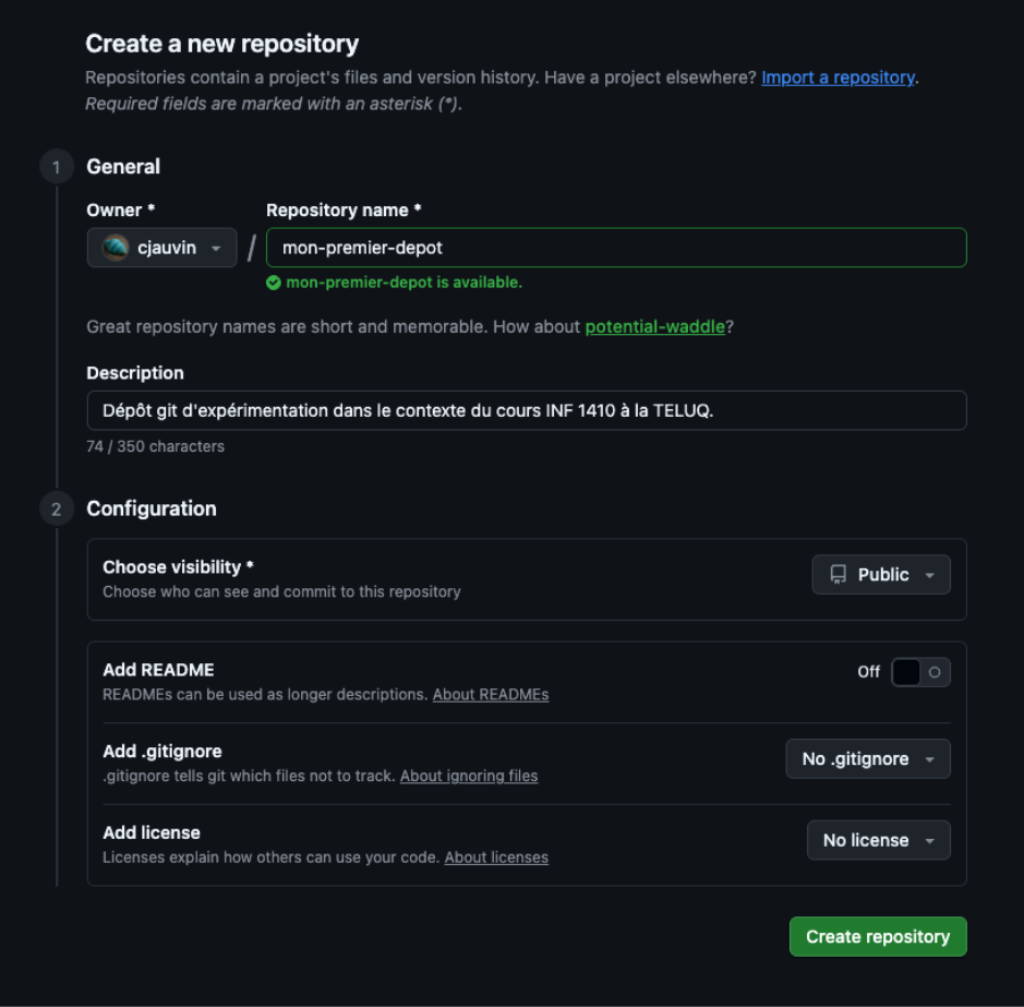 spécifier de nom, un nouveau répertoire mon-premier-depot serait