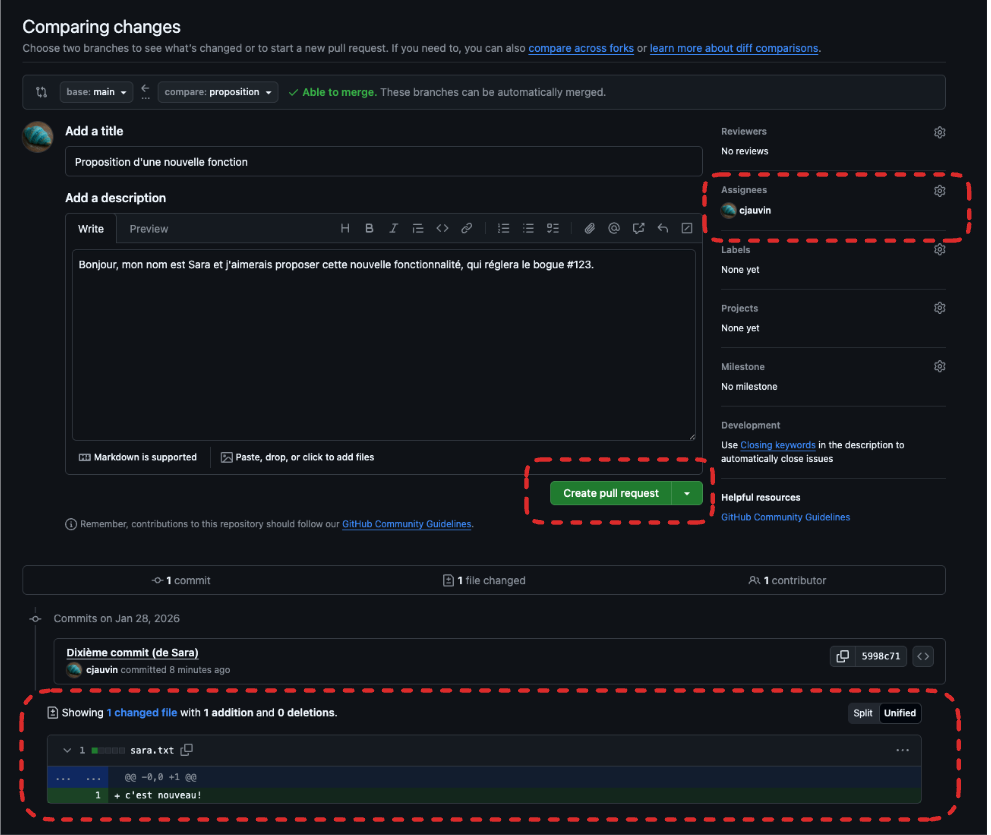 proposition sera “mergée” dans la branche main (tout cela se passe toujours