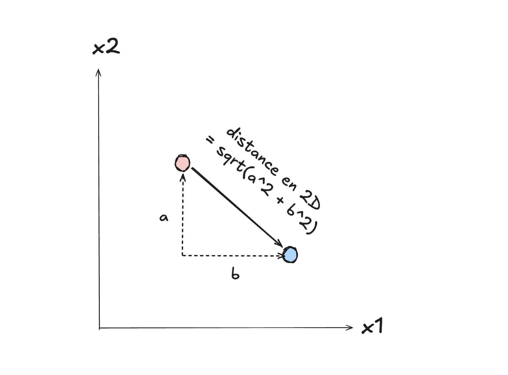 Nous avons vu avec l’algorithme des plus proches voisins qu’une notion essentielle est de pouvoir mesurer la distance entre deux objets, afin de déterminer à quel point ils sont similaires, qu’ils se ressemblent. Mais que veut-on dire exactement par cela? Pour de simples points en deux dimensions, nous avons une conception intuitive raisonnable : il s’agit de la distance euclidienne entre les deux points, qui se calcule à l’aide d’une formule mathématique simple.