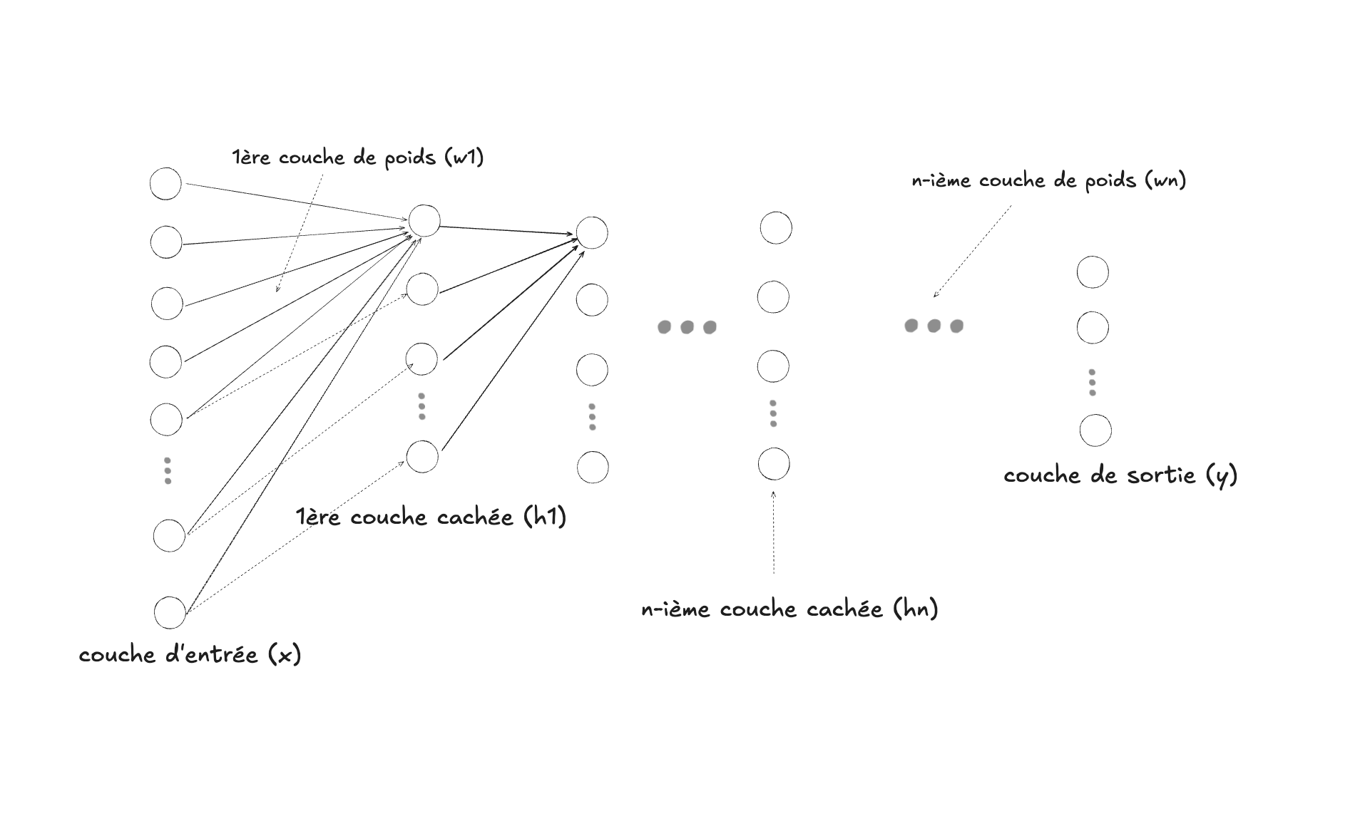 De la même manière, un réseau de neurones artificiels profond fonctionne en superposant plusieurs couches cachées : les premières extraient des caractéristiques élémentaires des données, les suivantes en composent des motifs plus riches, et ainsi de suite jusqu’à atteindre des niveaux d’abstraction qui permettent de résoudre des tâches complexes (par exemple comprendre une phrase, traduire un texte ou générer une image). Ce traitement en couches successives est précisément ce qui confère à l’apprentissage profond son nom et sa puissance : la capacité de transformer des données brutes en représentations de plus en plus élaborées, utiles pour la prise de décision ou la production de contenu.