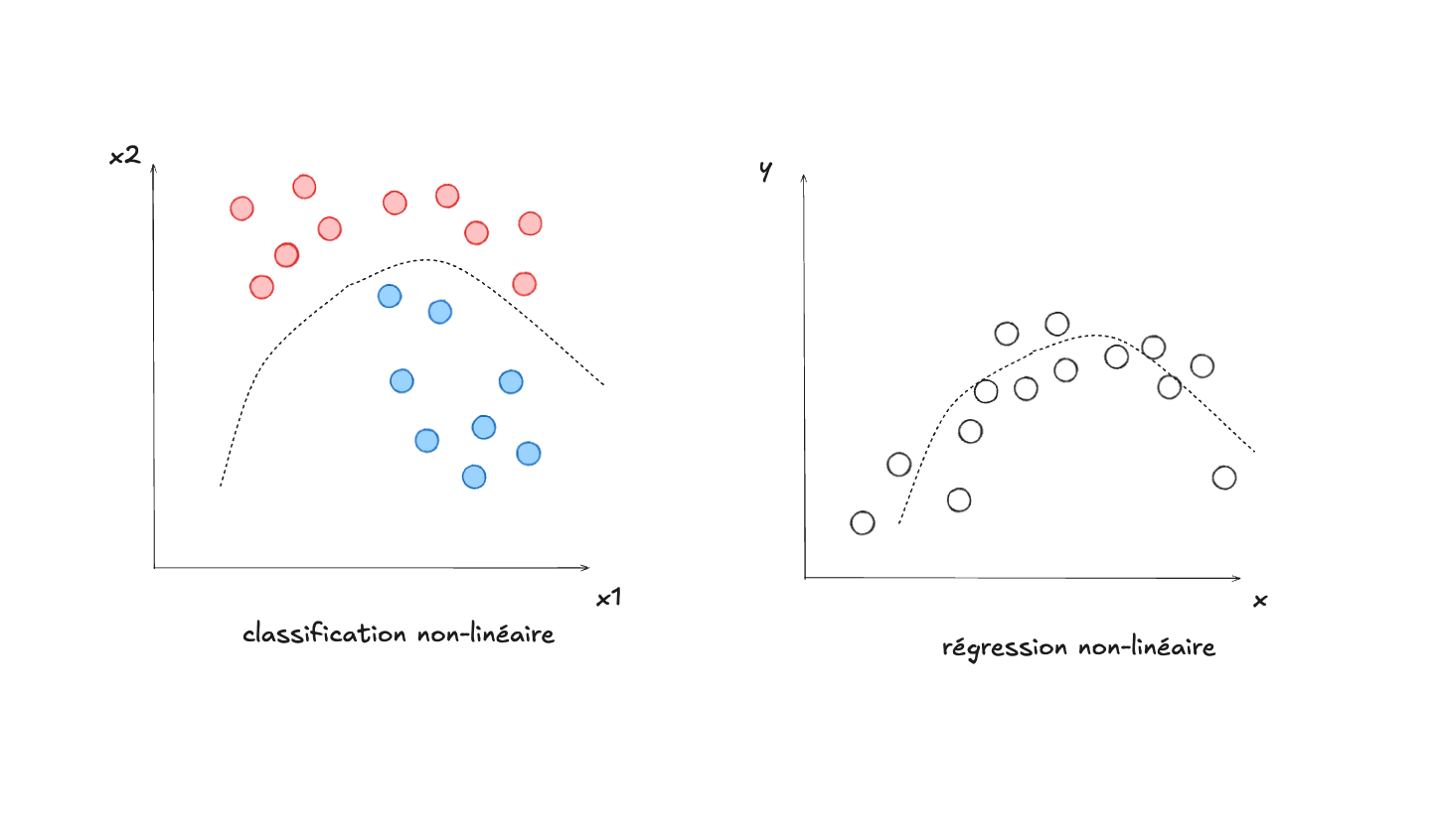 La couche cachée d’un réseau de neurones permet cela, en augmentant les possibilités d’articulation, ou d’expressivité d’un modèle moins puissant, comme la régression logistique. Comment accomplit-elle cela? Essentiellement avec la non-linéarité de la fonction d’activation (sigmoïde par exemple) qu’on retrouve au coeur des neurones de la couche cachée.